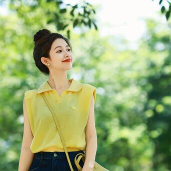 #夏日生活打卡季#🌈活力四射的夏日穿搭来啦!黄色无袖POLO衫,明